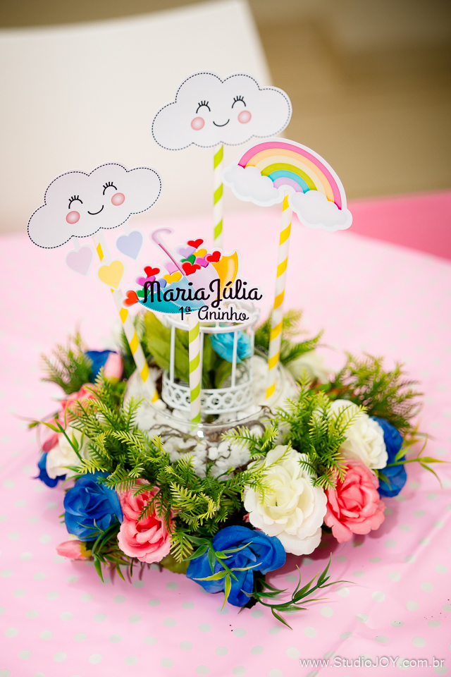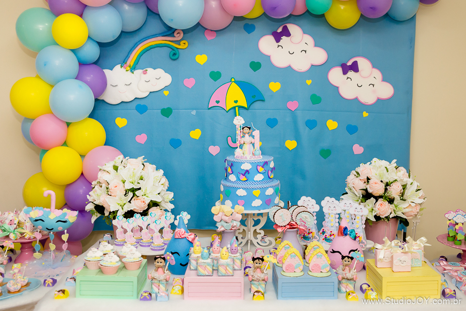 Decoração linda da Erikinha Festas, com o tema Chuva de Bençãos. Assim foi a comemoração do primeiro aninho da Maria Júlia.
