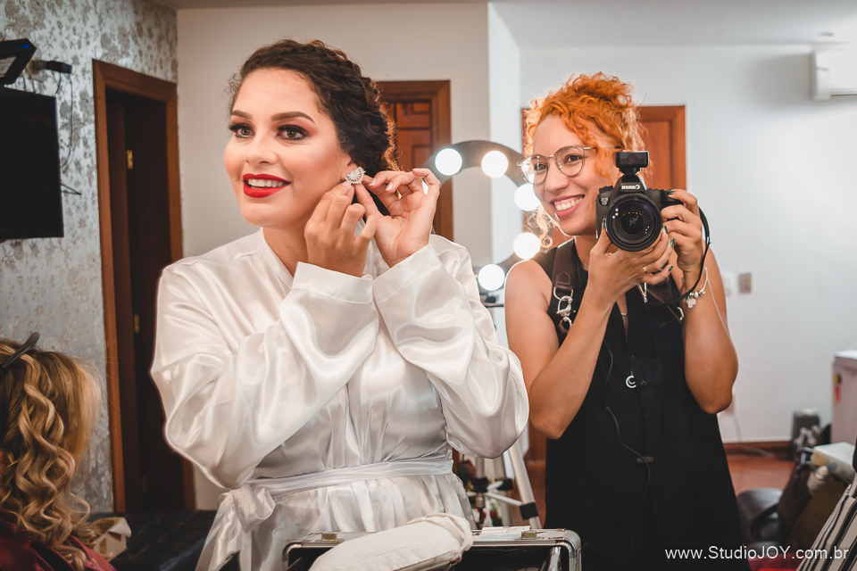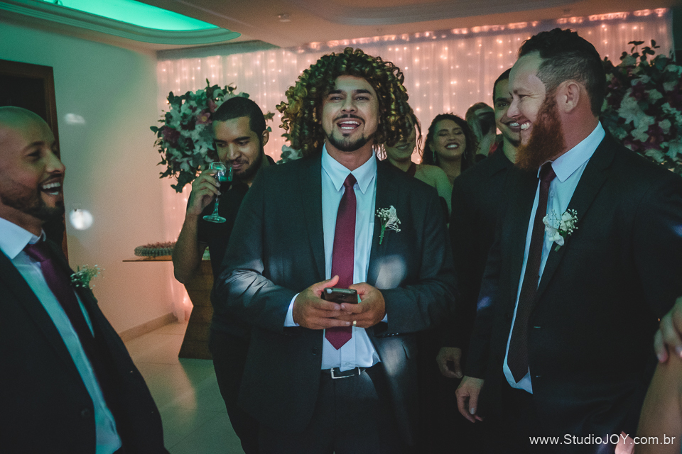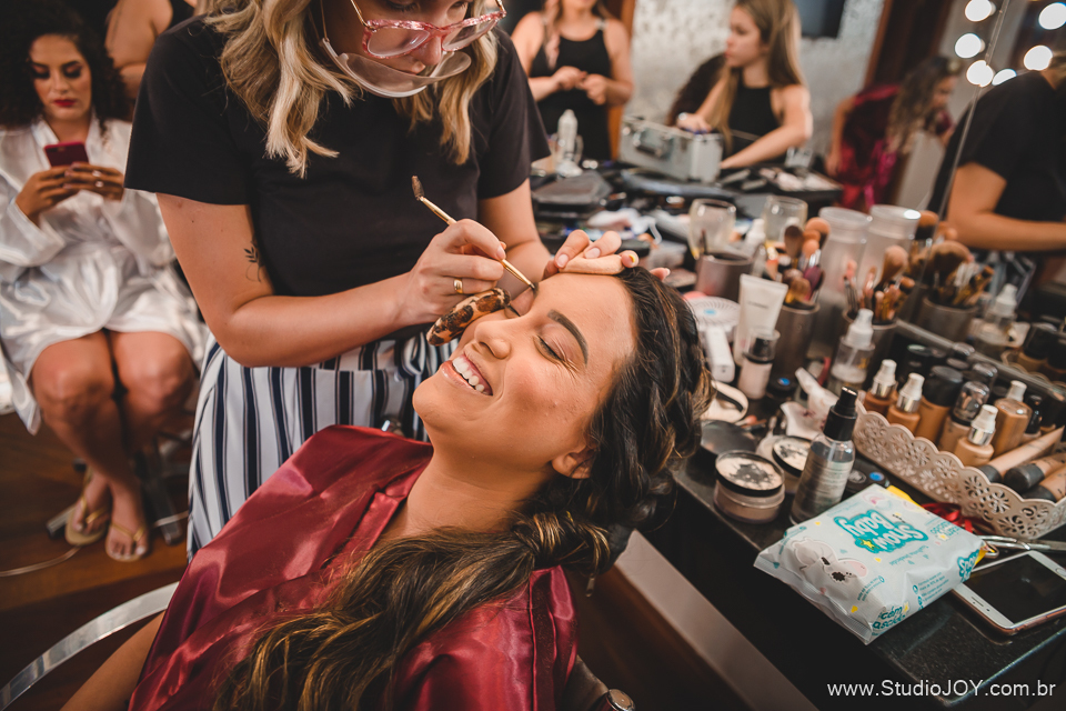 A tarde foi regada de muitas risadas com a Dona Rosana, com as madrinhas, com a Dona Lúcia da limpeza, com a Lud do cerimonial, com o Thiago que montou a estrutura do telão, com a Gláucia da Fleming, sempre com aquele sorrisão no rosto pra nos receber. Que delícia de tarde!