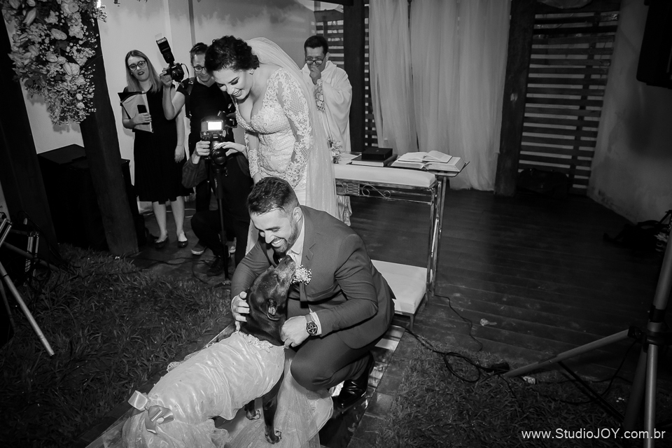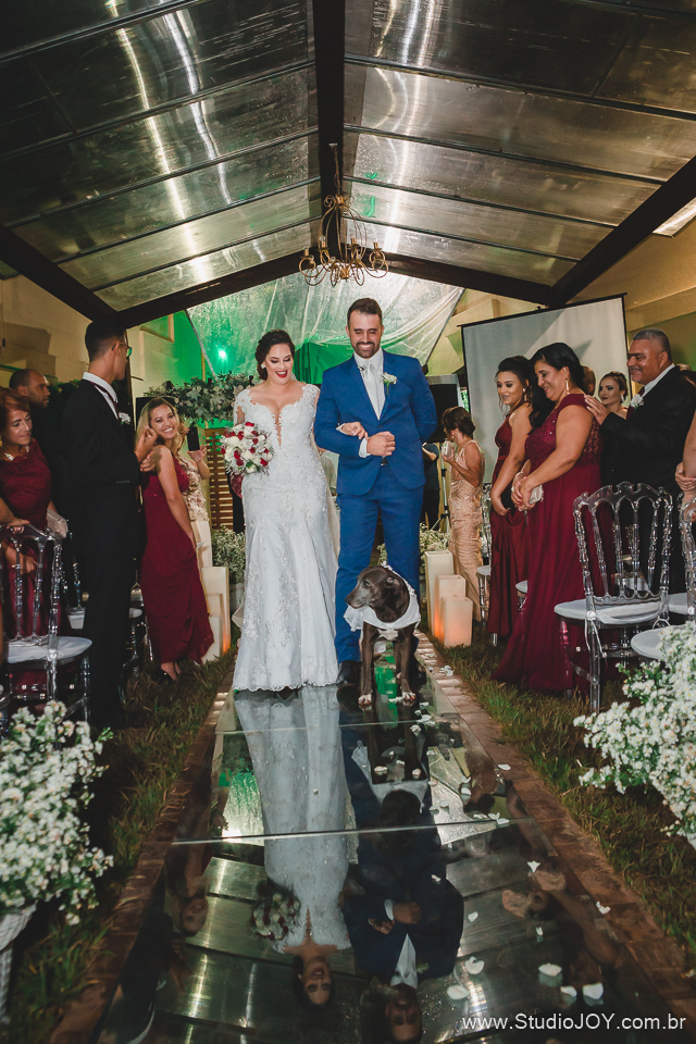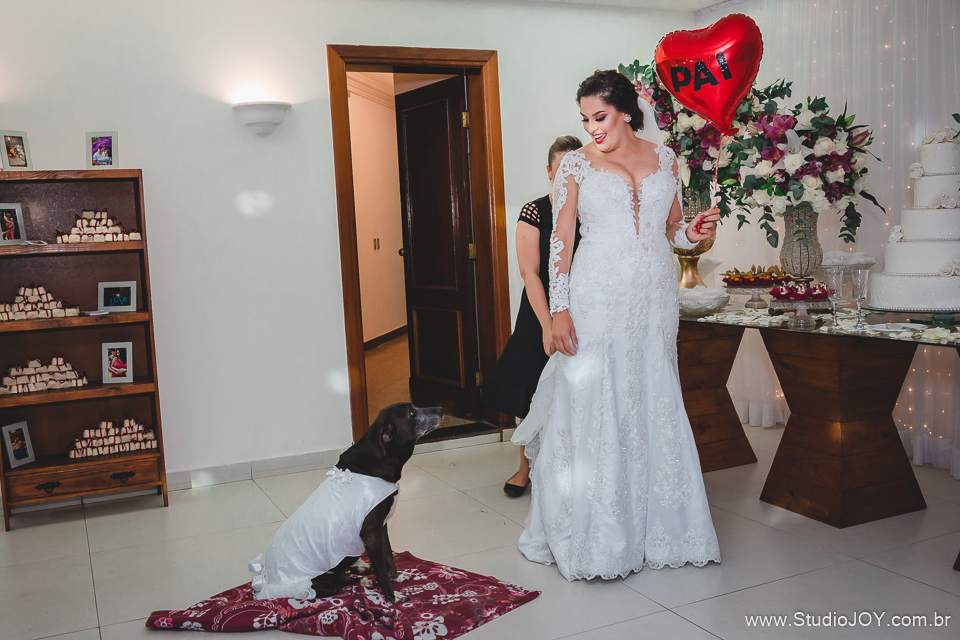 A noite não poderia ser diferente, teve First Look, onde o casal se viu antes do casamento, teve a Luluzinha, a cachorra mais gentil e educada desse mundo (geente ela é muito fofa!), com direito a unha vermelha e tudo mais que uma daminha merece... rs! e teve o pai que mora nos Estados Unidos e mesmo longe se fez presente, além de acompanhar tudo online! Foi incrível!